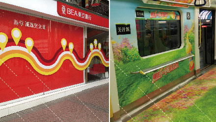 ECO-solvent outdoor printing: frontlit vinyl banner, backlit vinyl banner , Knife Coated Banner,outdoor self adhesive vinyl, magnet sticker,static sticker, car body sticker, one way vision sticker, mesh banner, outdoor backlit film, ECO PET Korea backlit film printing, double sides hanging banner, floor sticker, wallpaper,PU leather,flag banner.