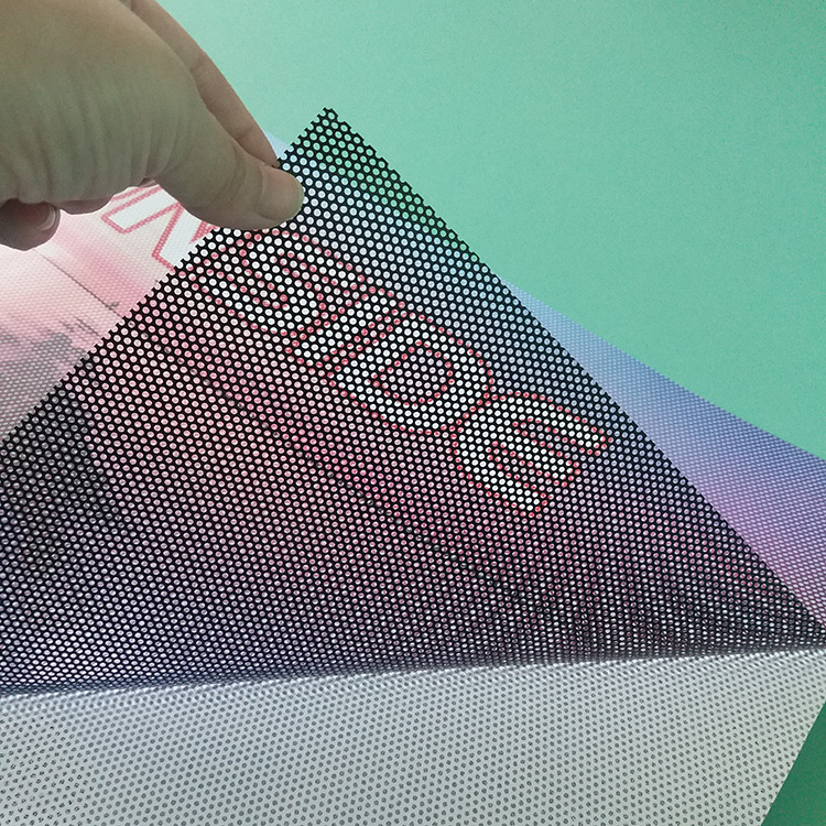 單孔透,也被稱為透視貼或網孔貼,是一種高效的廣告材料,它的主要材質為PVC,單孔透背面有膠,安裝方便,可直接粘貼