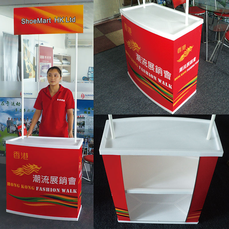 吸塑促銷臺(tái)款式新穎,結(jié)構(gòu)牢固,經(jīng)濟(jì)耐用;鋁合金折疊促銷臺(tái)重量輕,攜帶方便,結(jié)構(gòu)創(chuàng)新;