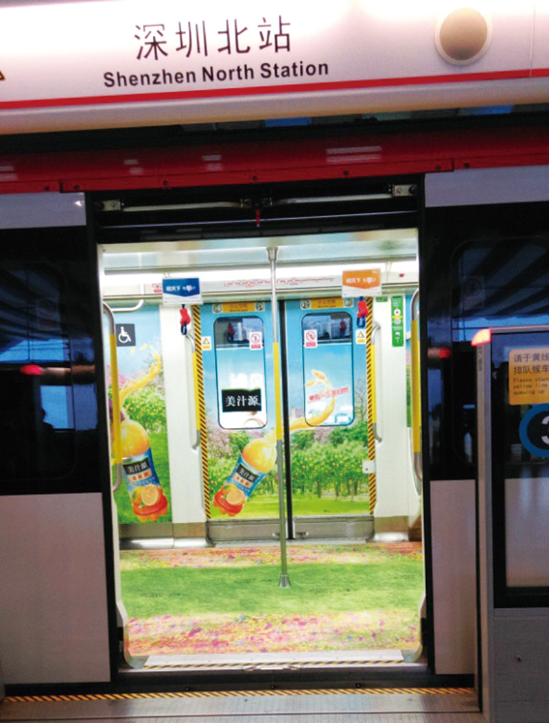 深圳生彩噴繪與深圳地鐵集團、香港雅仕維集團簽定戰略合作協議,生彩噴繪負責地鐵噴繪物料制作,包括車體廣告,地鐵車內廣告,車內地貼,座位可移貼,車門單孔透;軌道進口燈箱片,非軌道燈片,UV燈布,地鐵站站臺墻體3M導氣車貼噴繪。 地鐵噴繪物料的技術要求:貼紙海報類不干膠具備良好的可移性,燈片或燈布要符合阻燃要求,地貼防滑系數等級高,所有廣告噴繪物料環保。噴繪畫面精度要求2880Dpi。