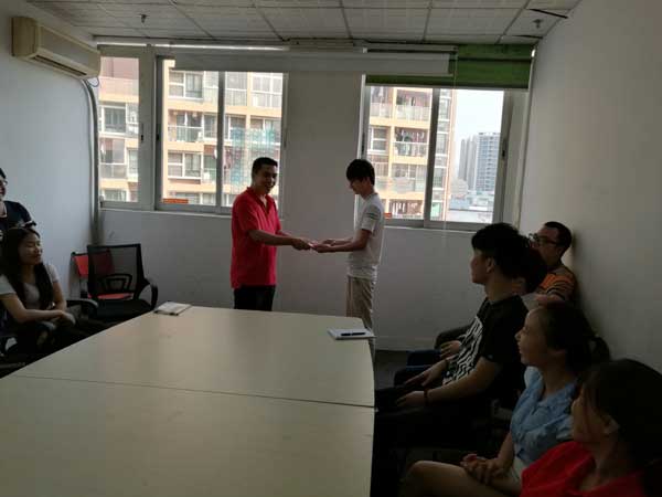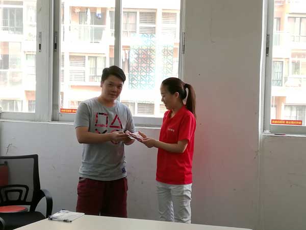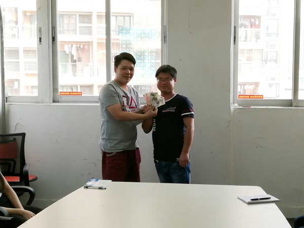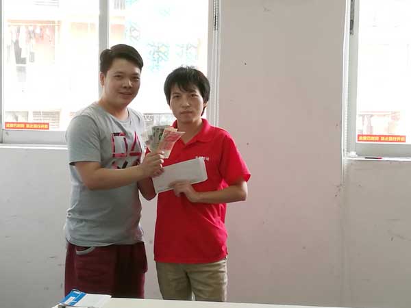 7月業(yè)績PK大賽冠軍,5000元大獎得主柳家德同事(右)