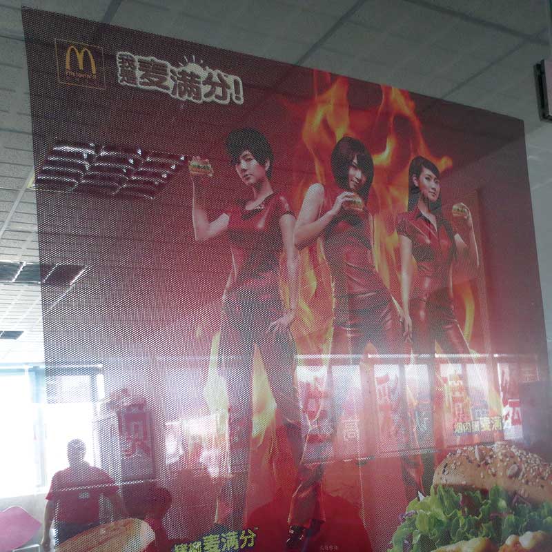 One way vision with a lot of round holes on the surface , suitable for pasting on glass , with a translucent effect ,Specially used for